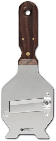 Nóż do trufli ze stali nierdzewnej z rączką z palisandru z prostym nożem. Nóż ma regulowaną grubość cięcia plastrów w zakresie od 0,2 do 3 mm. Jest doskonałym uzupełnieniem wyposażenia kuchni, ponadto można go wykorzystać do tarcia np. parmezanu.