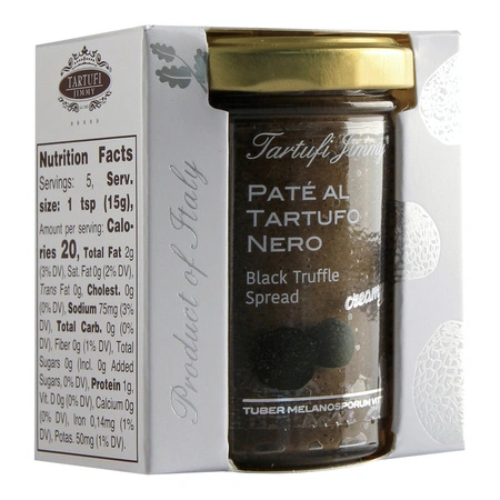 Skład: grzyby uprawne (Agaricus Bisporus), sok z Trufli Letniej (Tuber Aestivum Vitt), Oliwa z Oliwek Extra Virgin 5%, olej Słonecznikowy 5%, Grana Padano, Czarne Trufle 3%, Trufla Moscato 2% (Tuber Brumale Vitt), Trufla Czarna 1% (Tuber Melanosporum Vitt), sól, skrobia kukurydziana, czarne oliwki, pietruszka, lecytyna sojowa, biały pieprz, aromat, atrament z mątwy, czarny pieprz, czosnek.