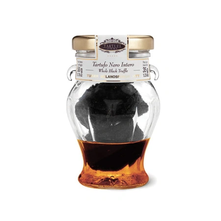Skład: trufla czarna cała (Tuber Melanosporum Vitt - 3 klasa - pochodzenie Włochy), sok truflowy, sól, aromaty.